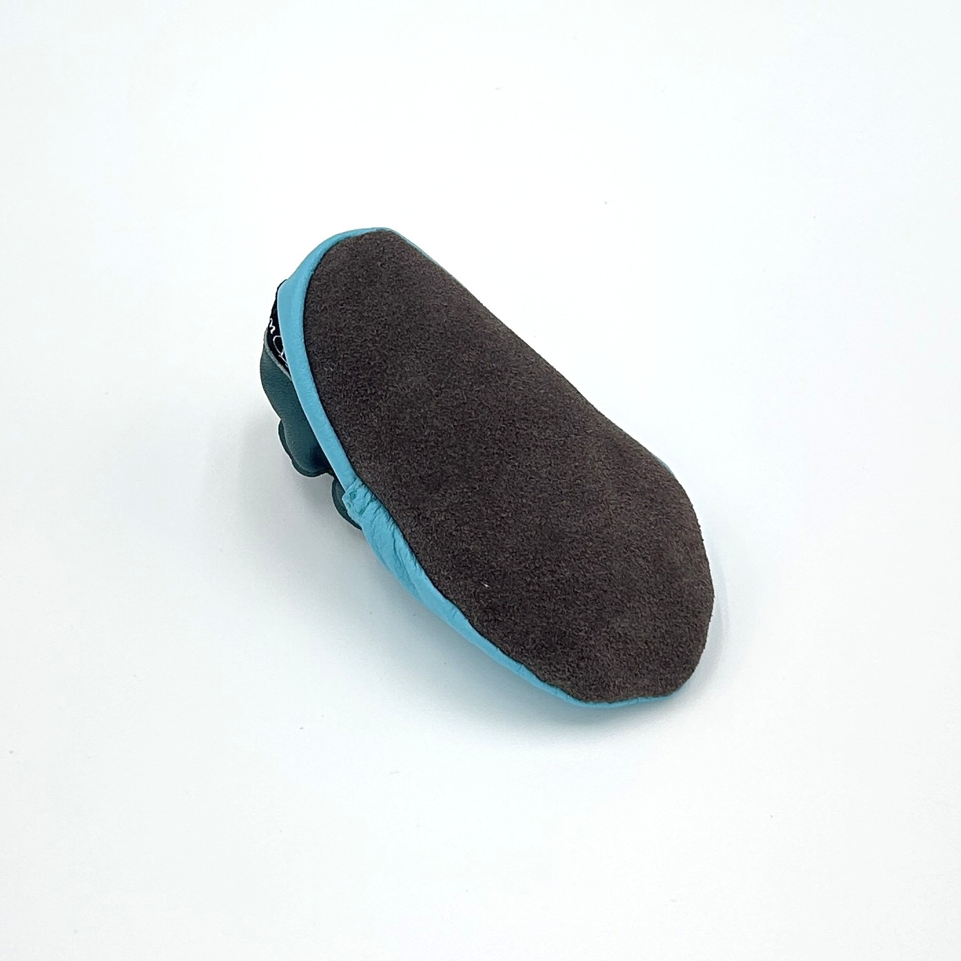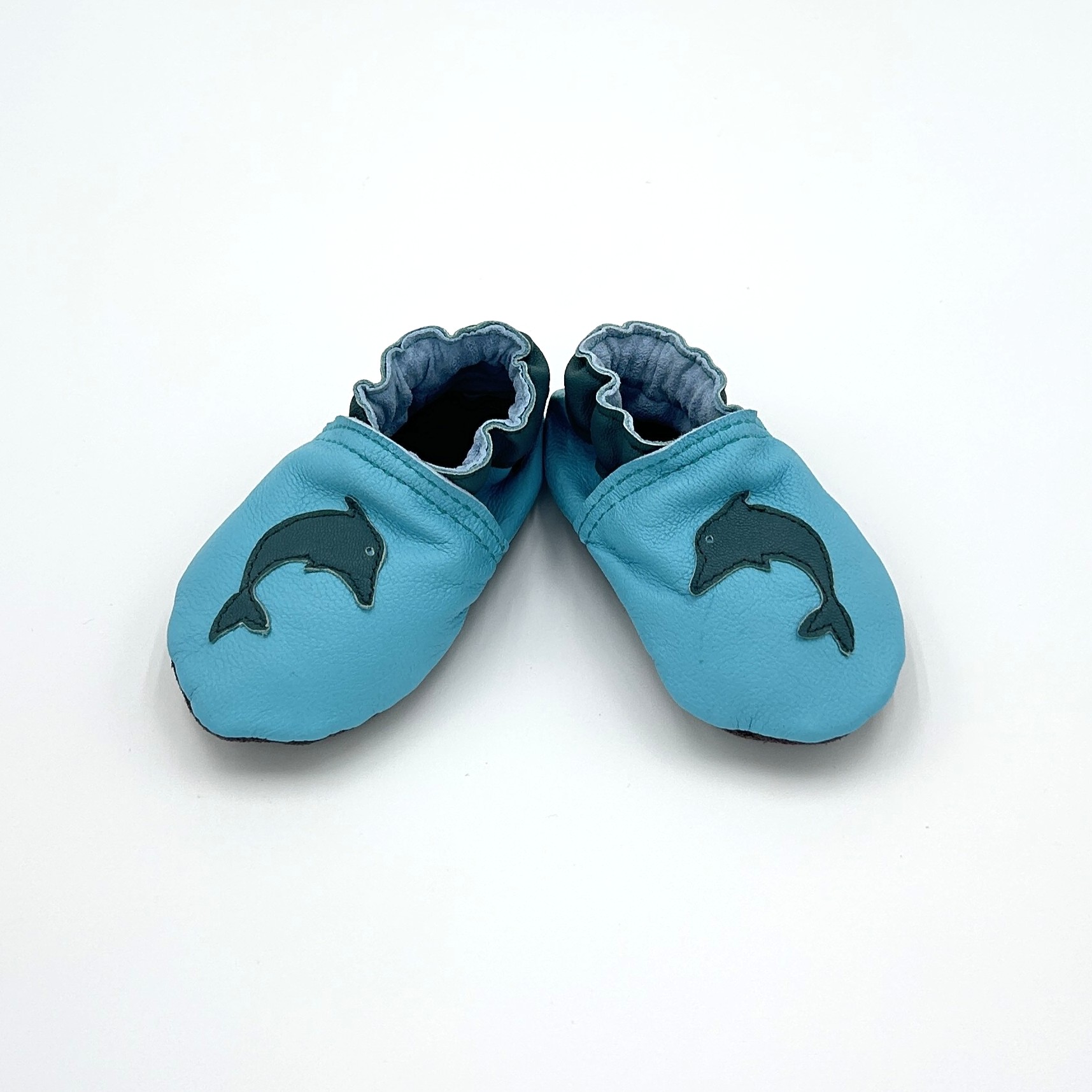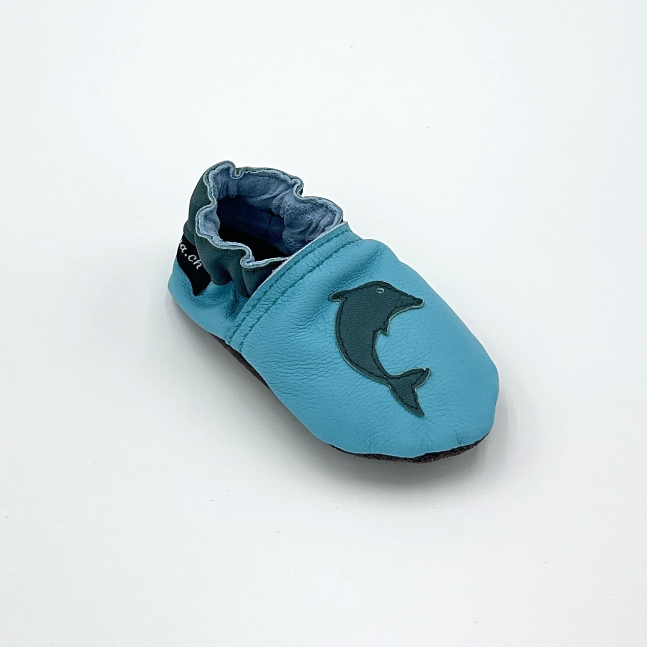 Start / Leder-Finkli / Finkli für Babys / Lederfinkli „Delfin“ auf türkis