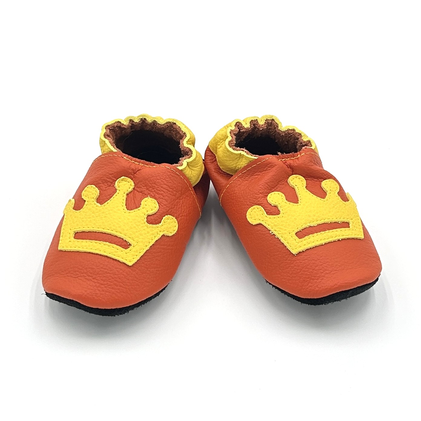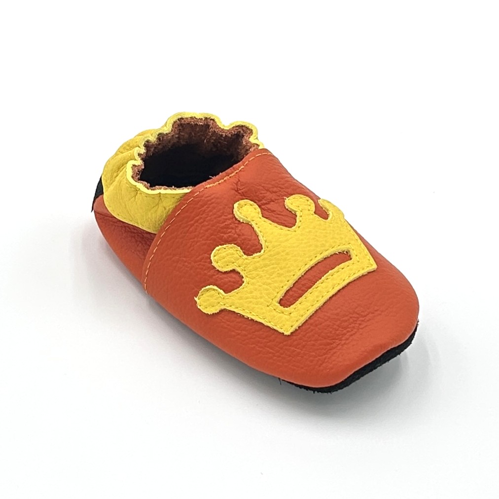 Startseite / Leder-Finkli / Finkli ab Krabbelalter / Lederfinkli „Krone“ auf orange
