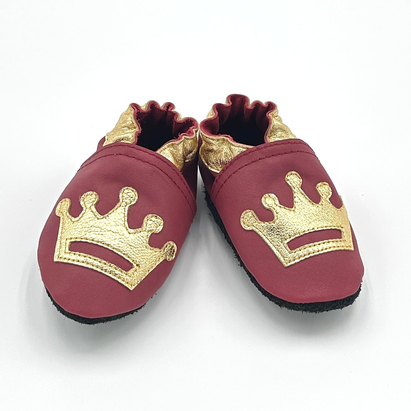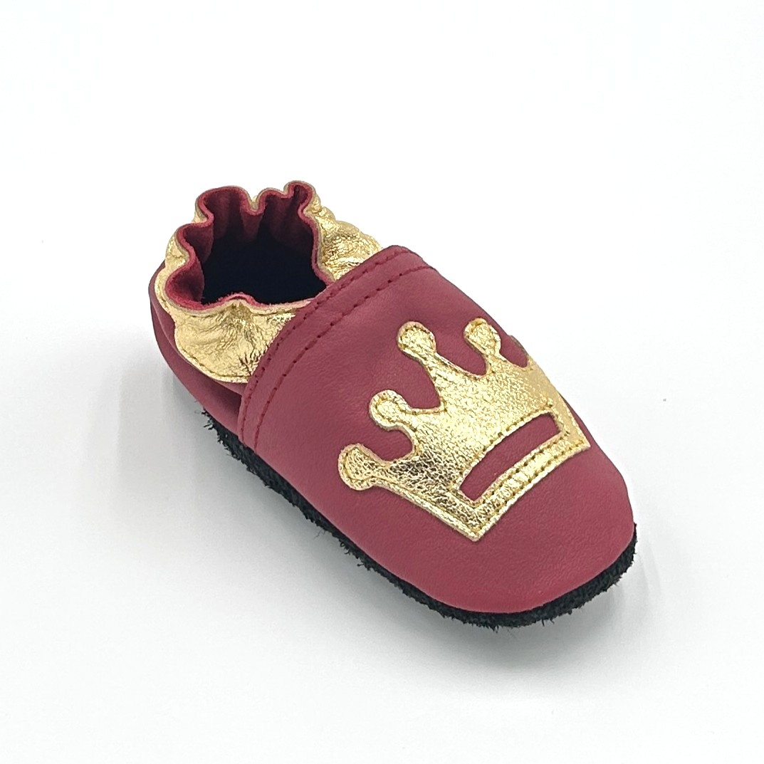 Startseite / Leder-Finkli / Finkli ab Krabbelalter / Lederfinkli „Krone“ auf rot