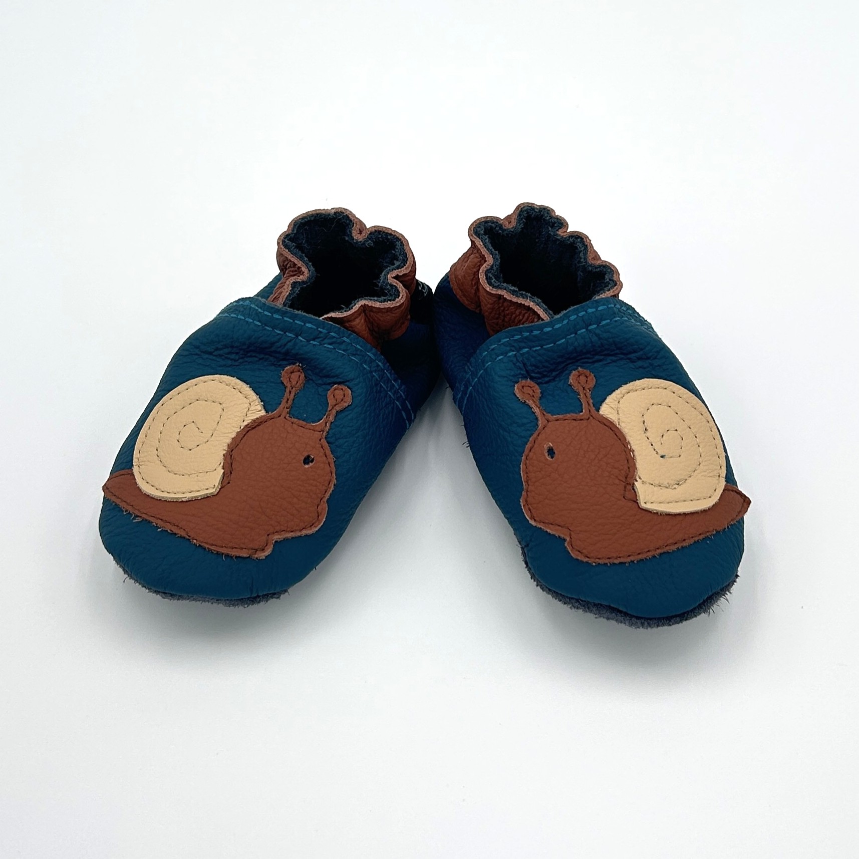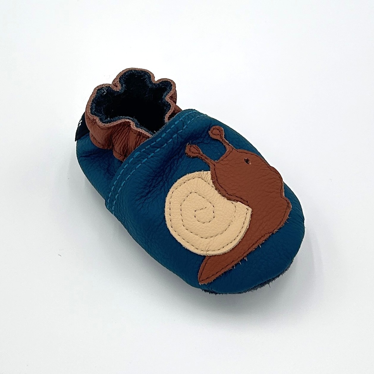 Startseite / Leder-Finkli / Finkli ab Krabbelalter / Lederfinkli „Schnecke“ auf petrol