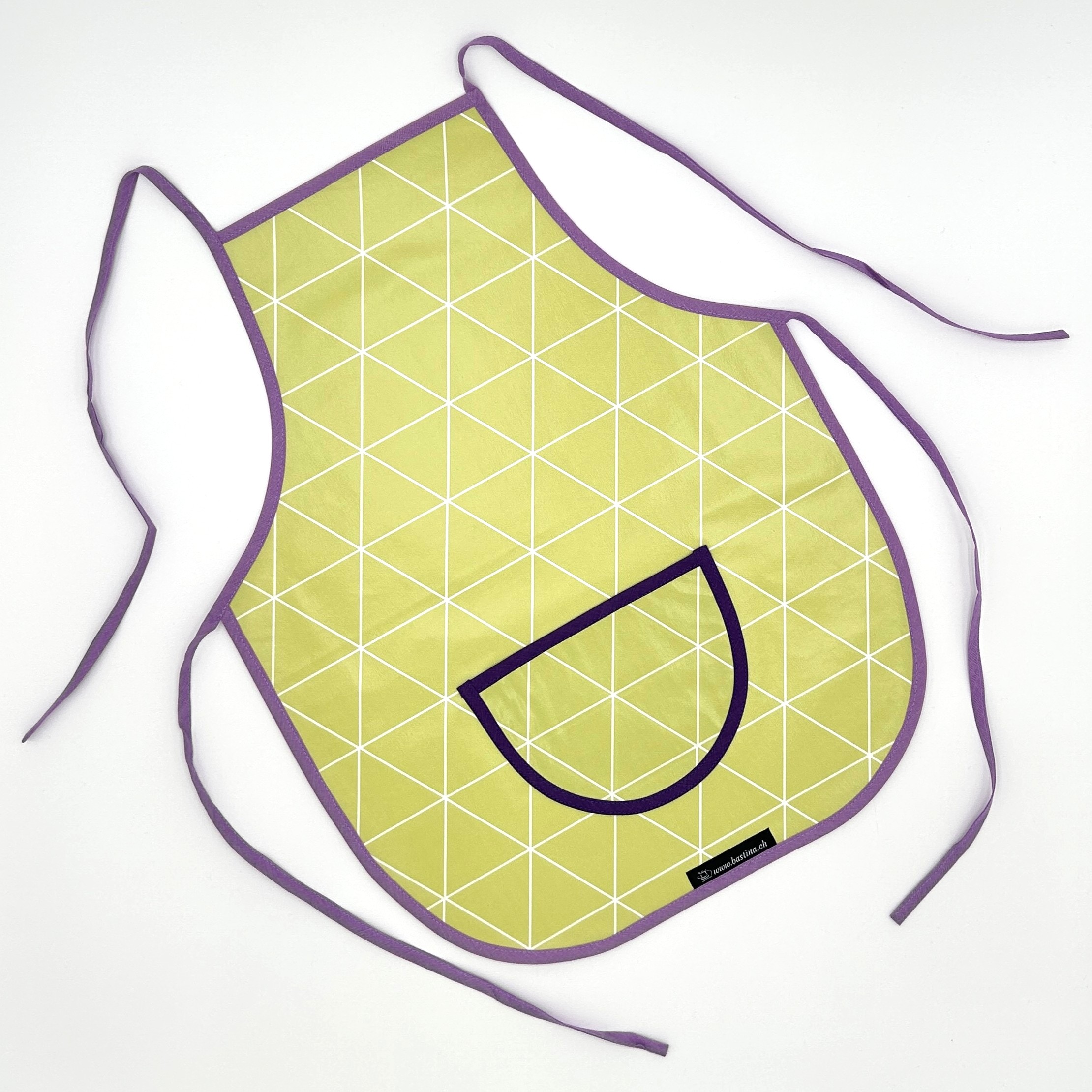 Schürze „Dreiecke“ auf grün mit violettem Rand
