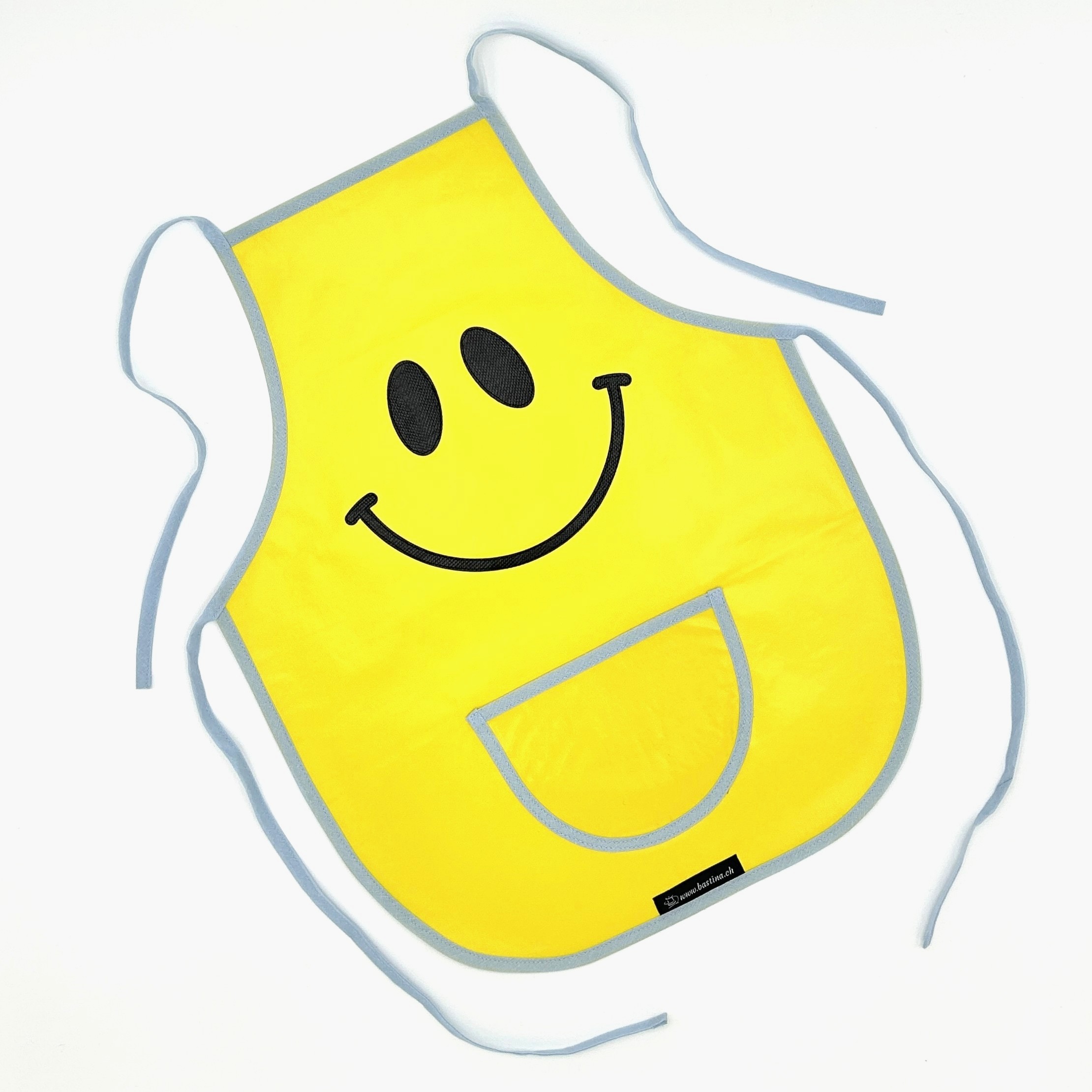 Start / Schürzen / Schürze „Smiley“ auf gelb mit hellblauem Rand